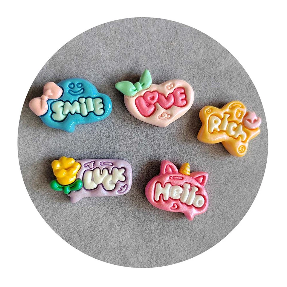 1. Op zoek naar kleurrijke en charmante krokodillenbedels van hars om wat plezier en positiviteit aan je leven toe te voegen? Zoek niet verder dan de Resin Croc Charms van Sola Craft Co LTD! Verkrijgbaar in roze, geel, blauw en paars, elke bedel heeft een andere enkele Engelse letter op het oppervlak van de harscabochon, waarin woorden als 'rijk', 'liefde', 'glimlach', 'geluk' en 'hallo' worden gespeld. ." Deze charmante bedels kunnen worden gedragen om geluk en positieve energie in je leven te brengen. Wacht niet, bestel vandaag nog uw harskrokodilbedels bij Sola Craft Co LTD!